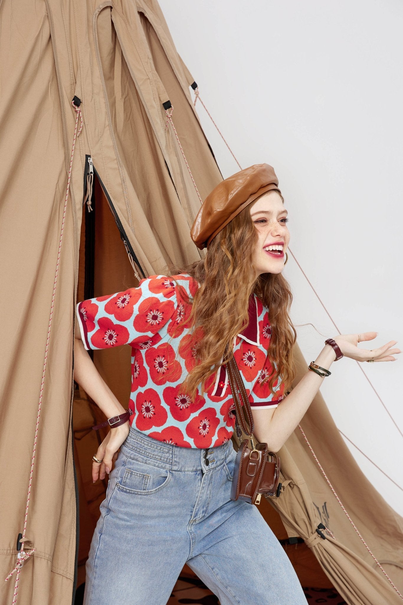 Daisy Floral Casual Knit Pullover Knitwear Women,Autumn Vintage Girly Basic Daily Sweater Crop Top